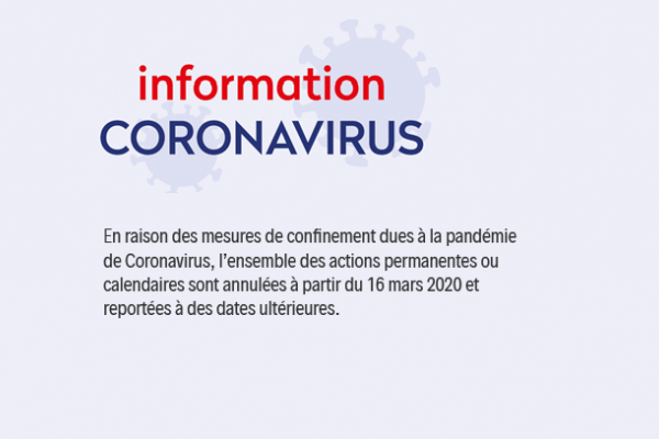 En raison des mesures de confinement dues à la pandémie de Coronavirus et mises en place à partir du 16 mars 2020, l’ensemble des actions permanentes ou calendaires d'accompagnement sont annulées et reportées jusqu’à nouvel ordre.